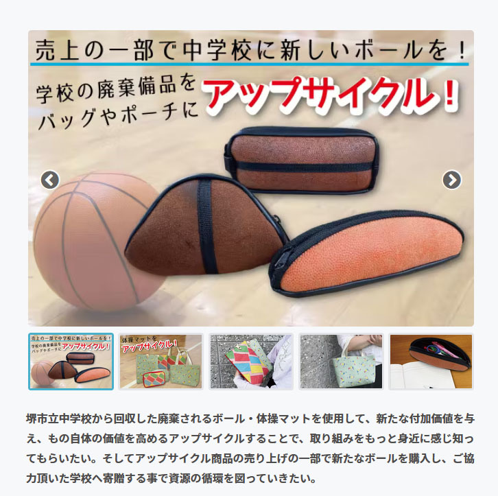 プロジェクト名:売上の一部で学校に新しいボールを!学校の廃棄備品をバッグやポーチにアップサイクル