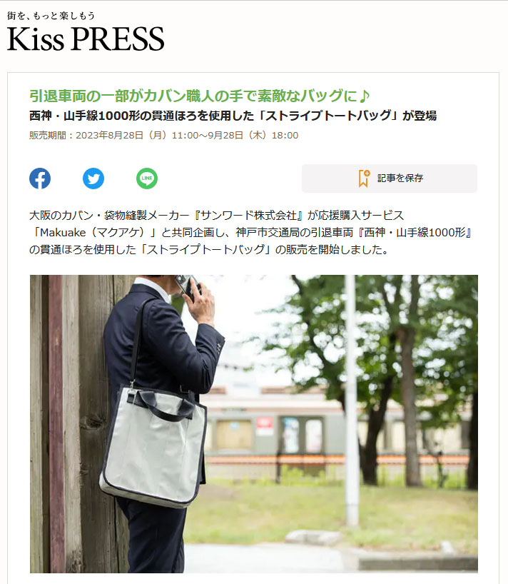 兵庫県の地域情報サイト「Kiss PRESS(キッスプレス)」にて8月28日(月)より応援購入サービス「Makuake(マクアケ)」で開始のプロジェクトについて掲載いただきました。