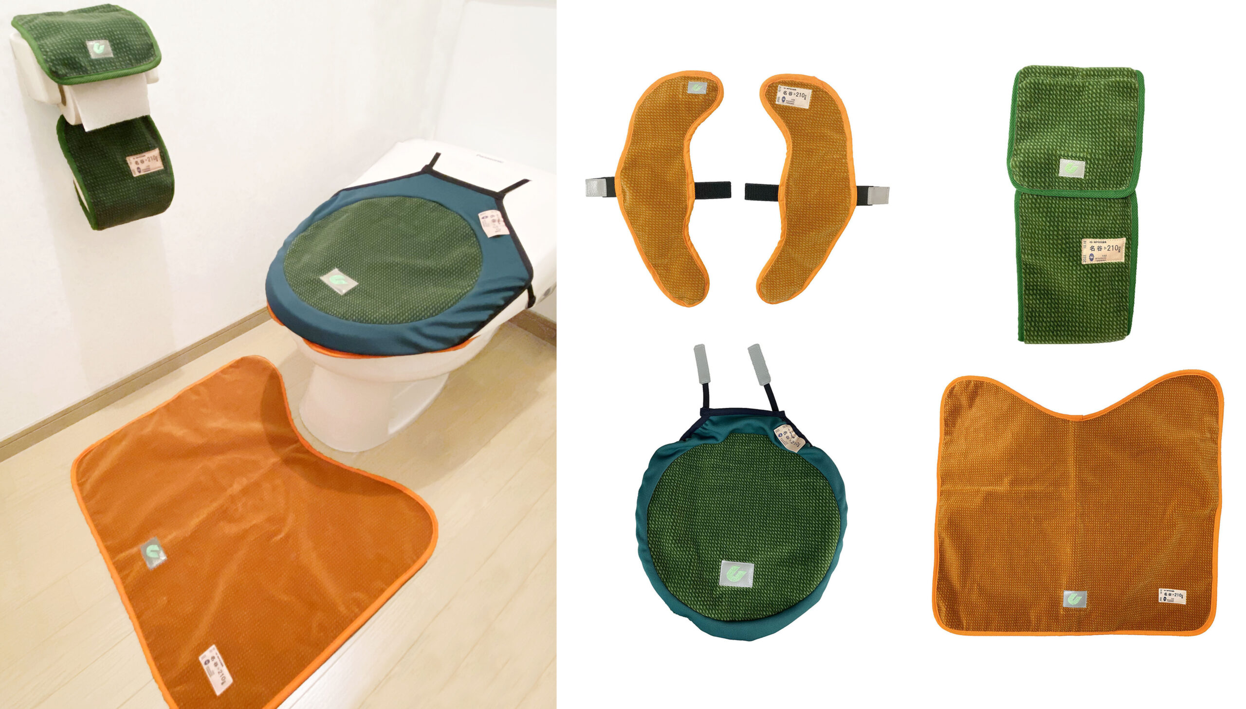 「日々の暮らしの中でも電車車両を感じることができる空間を作りたい!」という大学生たちの思いから、家の中でもトイレというリラックスできる場所に焦点を当て、神戸市交通局の座席シート( モケット) 生地を使用したトイレタリーシリーズ「トイレ de トレイン」を作製。大学生の柔軟な発想から『RAU-RAU-G HAITETSU』としてこれまでにない新たな商品が完成しました。商品ラインナップはトイレフタカバー、トイレマット、トイレ便座カバー、ペーパーホルダーカバーの4 アイテム。家の中では本来体感できない「電車空間」を作り出し、日々の暮らしにワクワクする瞬間を演出できるユニークな商品となっています。