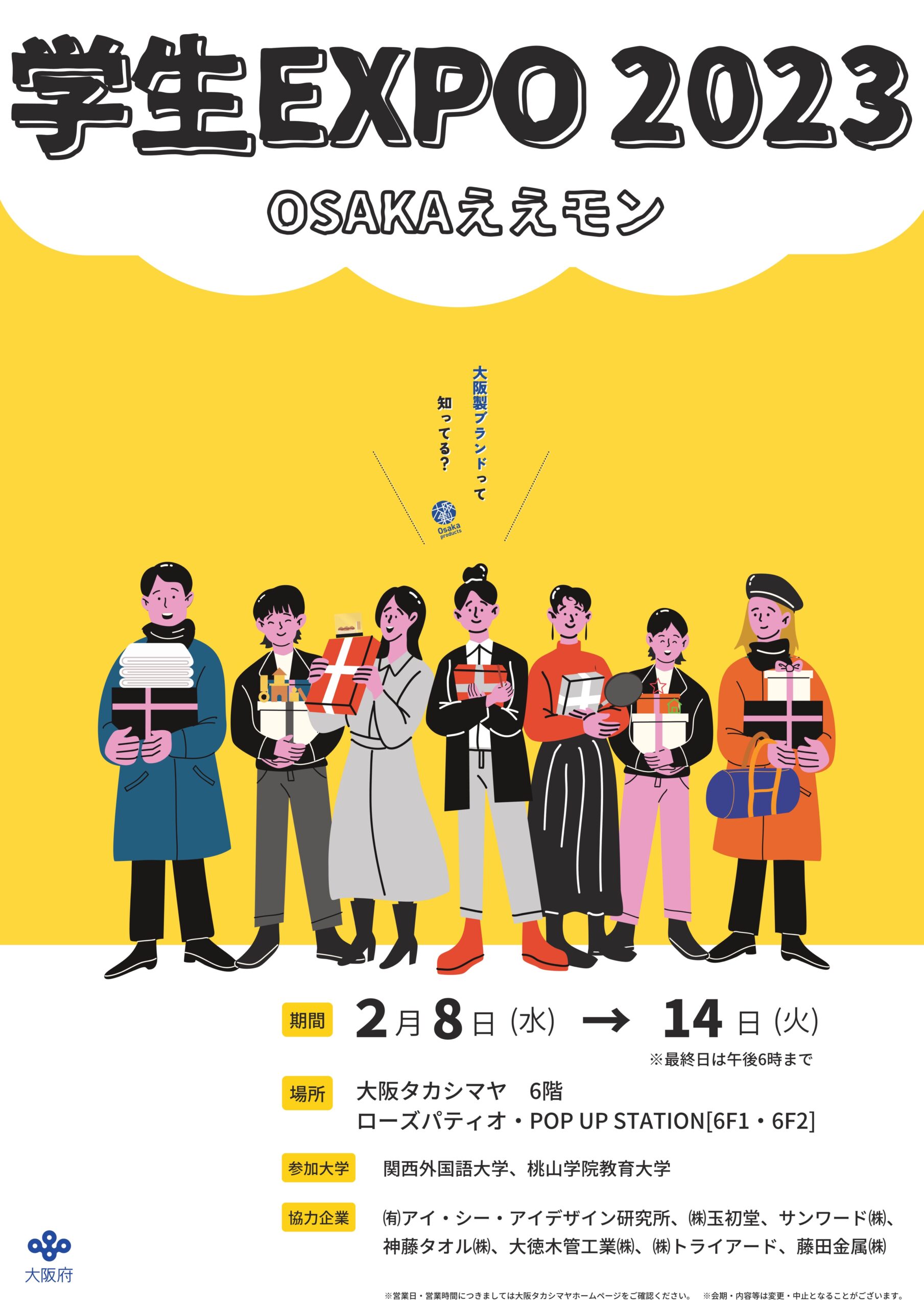 2月8日(水)より、高島屋大阪店にて開催の「学生EXPO2023 OSAKAええモン」に出店致します。