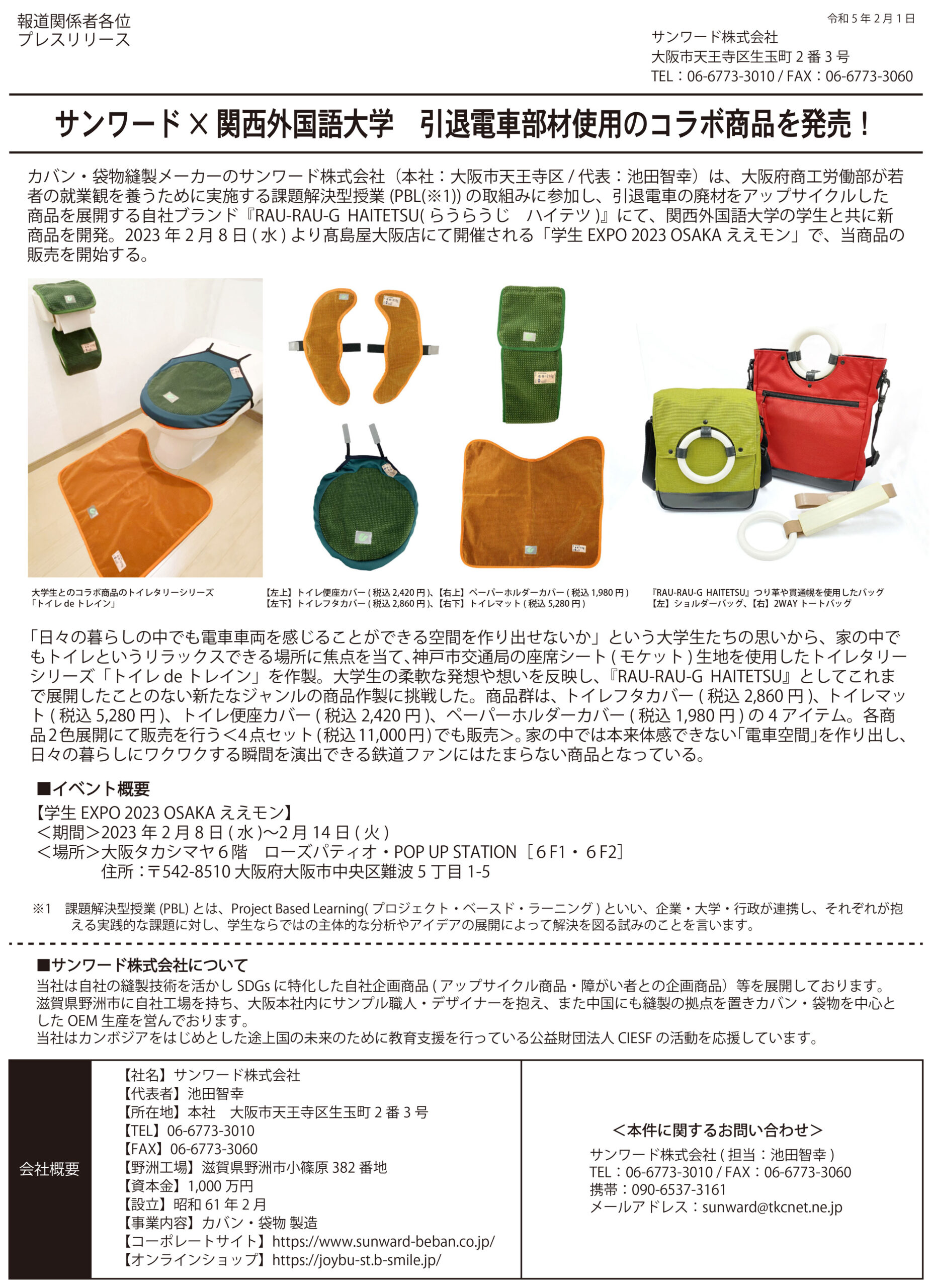 引退電車部材使用の関西外国語大学学生とのコラボ商品発売