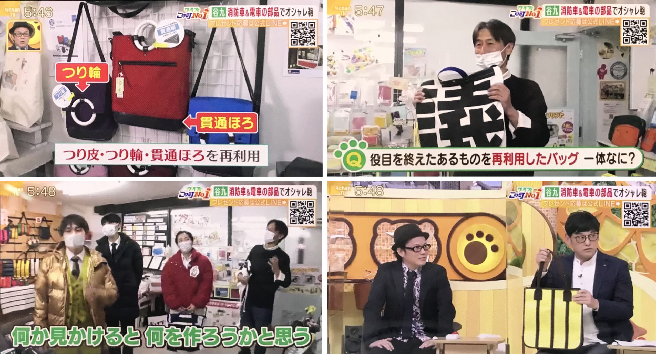 2023.03.01 メディア 毎日放送「よんチャンTV」で紹介されました 2023年3月1日放送の毎日放送「よんチャンTV」にて、当社のアップサイクル商品や取り組みについてご紹介いただきました。 一覧へ戻る