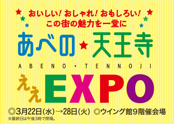 3月22日(水)より、あべのハルカス近鉄本店 9階催会場にて開催の「あべの天王寺ええEXPO」に出店致します。