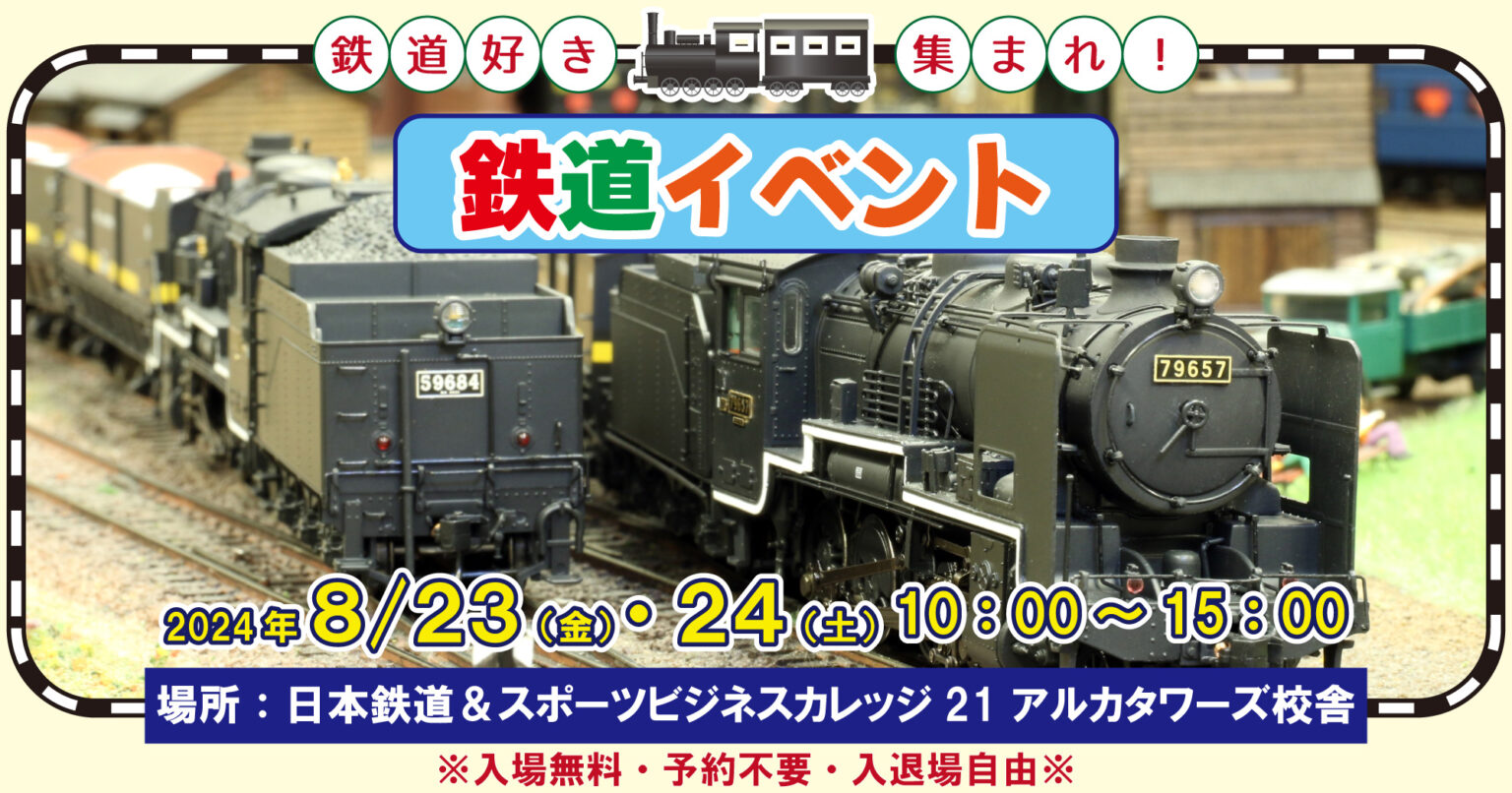 8月23日(金)・24(土)に日本鉄道&スポーツビジネスカレッジ21にて開催の「鉄道イベント」に出店いたします。