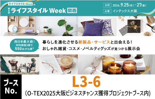 9月25日(水)〜27(金)にインテックス大阪にて開催の「第5回ライフスタイルweek関西」に出展いたします。ブースでは当社アップサイクル商品の展示をさせていただきます。