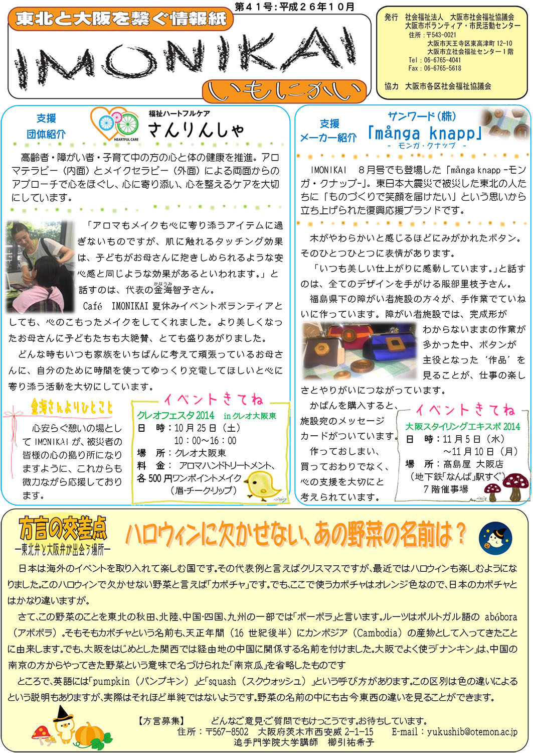 東北と大阪を繋ぐ情報誌「IMONIKAI(いもにかい) 第41号」に「モンガ・クナップ」について掲載いただきました。