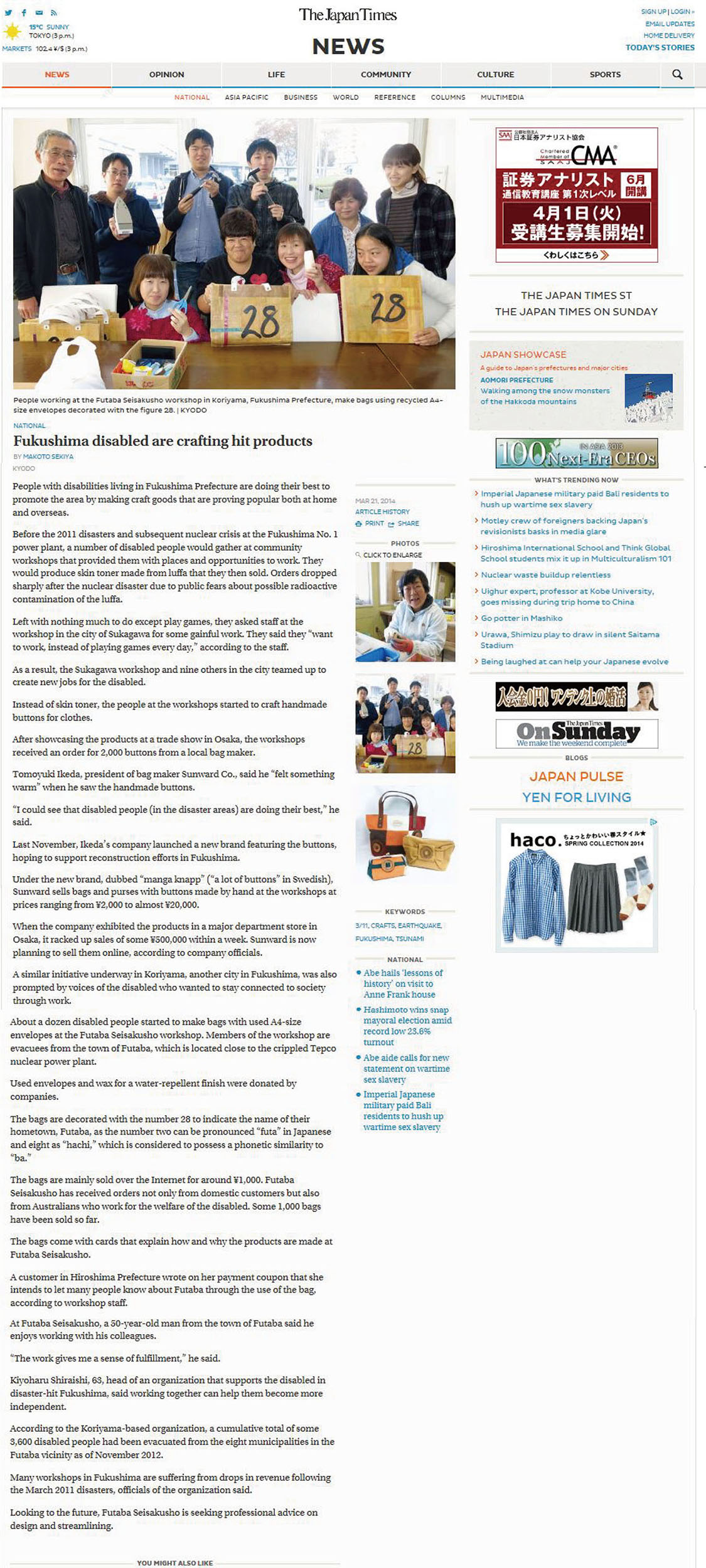 福島県に住む障害者は、国内外を問わず工芸品を作成することで地域の復興に尽力しています。