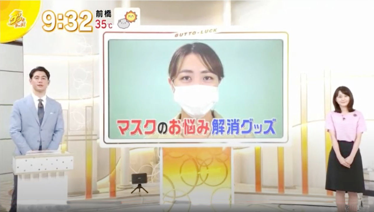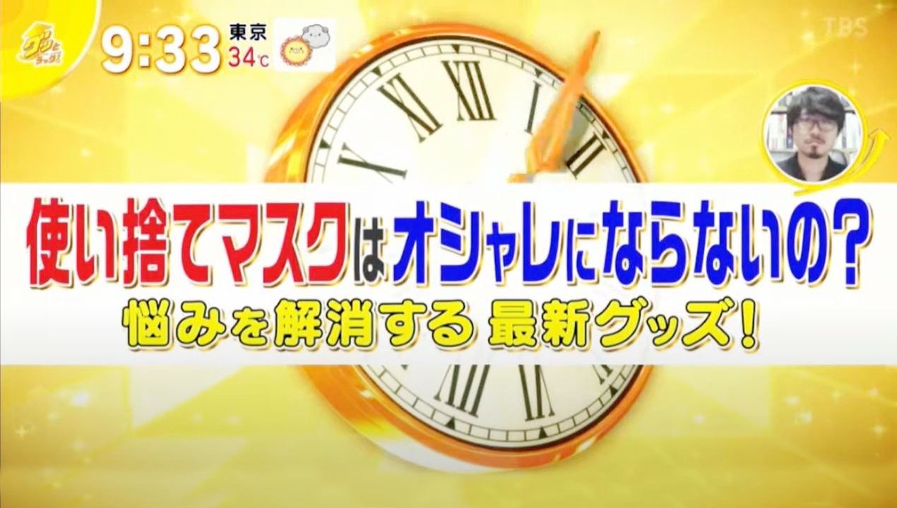 2020.08.05 メディア TBSテレビ「グッとラック!」にて紹介 「マスクのお悩み解消グッズ」の特集コーナーにて当社マスク用品グッズ【洗えるマスクカバー】が紹介されました。 全47種類のマスクカバーの中から2柄を取り上げて頂きました。 一覧へ戻る