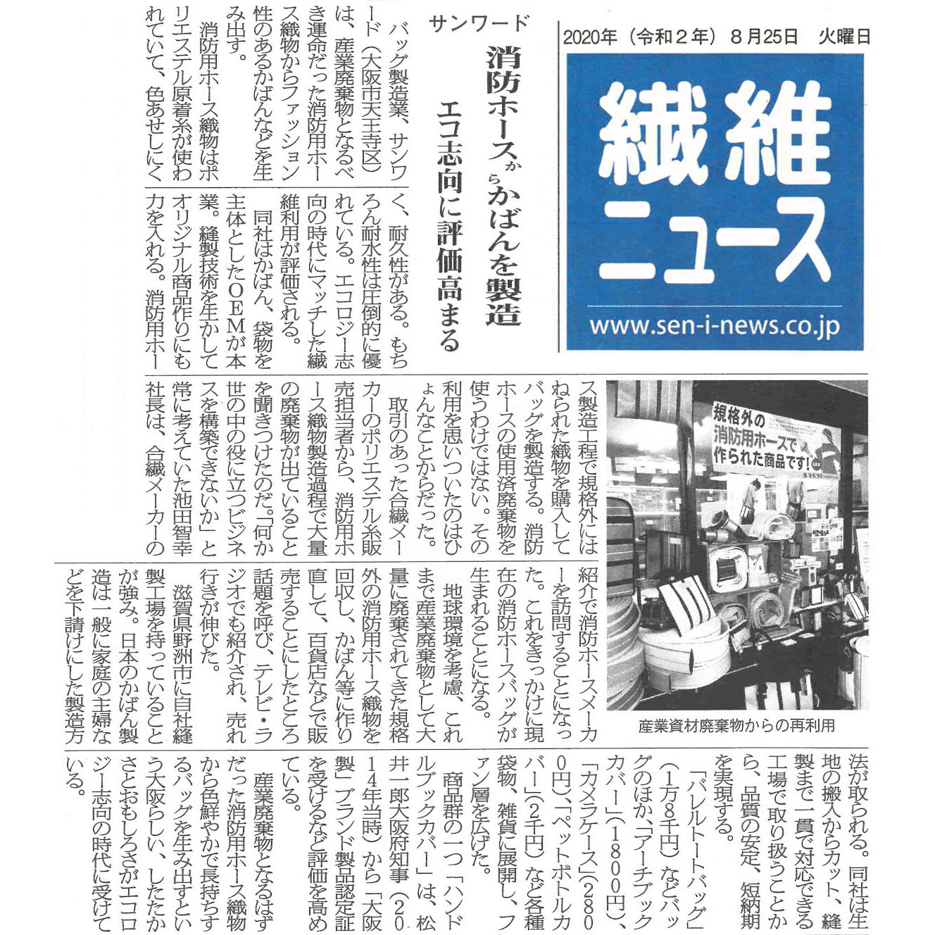 2020.08.25 メディア 日刊繊維総合紙「繊維ニュース」掲載 8/25付の日刊繊維総合紙「繊維ニュース」に,「らうらうじ second house」が、産業廃棄物となる規格外消防用ホースを再利用した鞄の製造が、エコ志向に評価が高まっているとご紹介いただきました。 一覧へ戻る