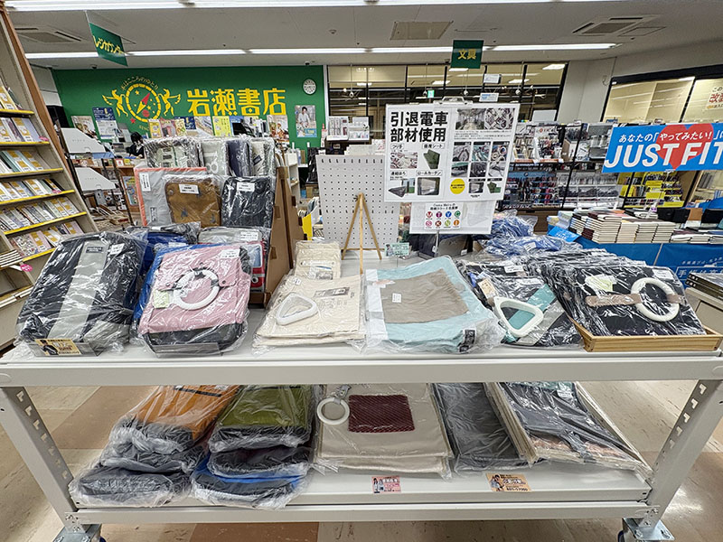 11月12日(水)より岩瀬書店 福島駅西口店にて、引退電車部材をアップサイクルしたバッグや小物「RAU-RAU-G HAITETSU」の商品が期間限定販売となります。