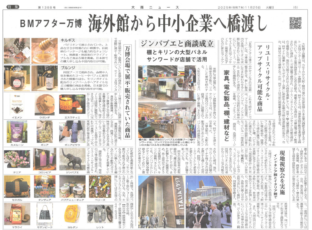 2025年11月25日(火)発刊の大商ニュースにて、当社アップサイクルの取り組みについて掲載していただきました。