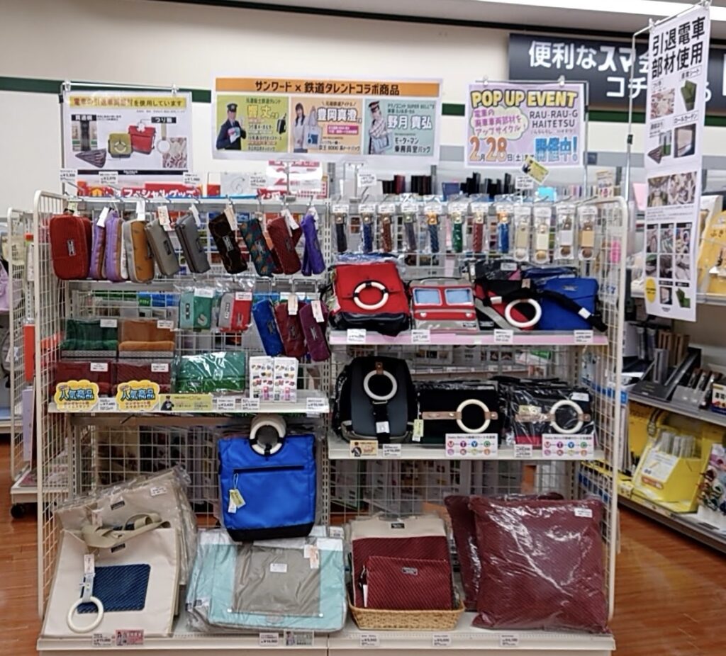1月20日(火)より三洋堂書店 新開橋店にて、引退電車部材をアップサイクルしたバッグや小物「RAU-RAU-G HAITETSU」の商品が期間限定販売となります。