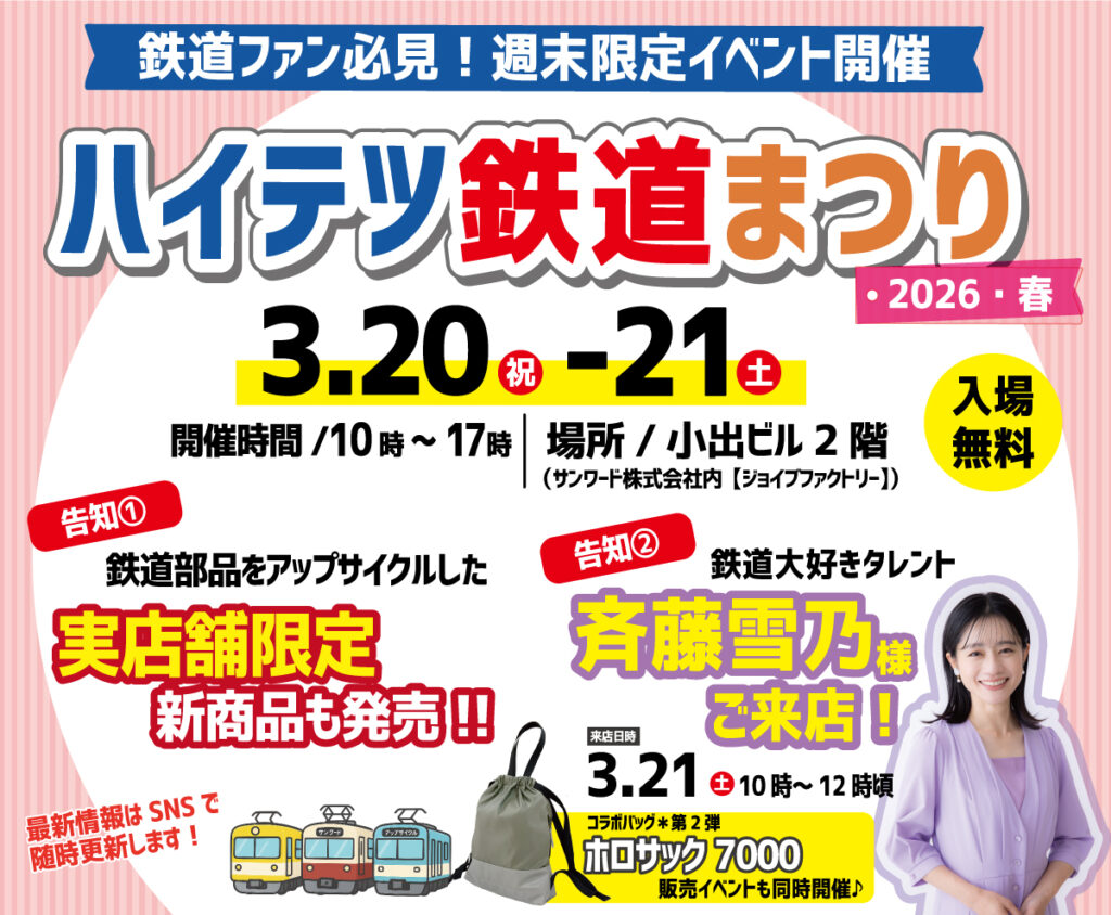「ハイテツ鉄道まつり 2026・春」開催(3/20-21)